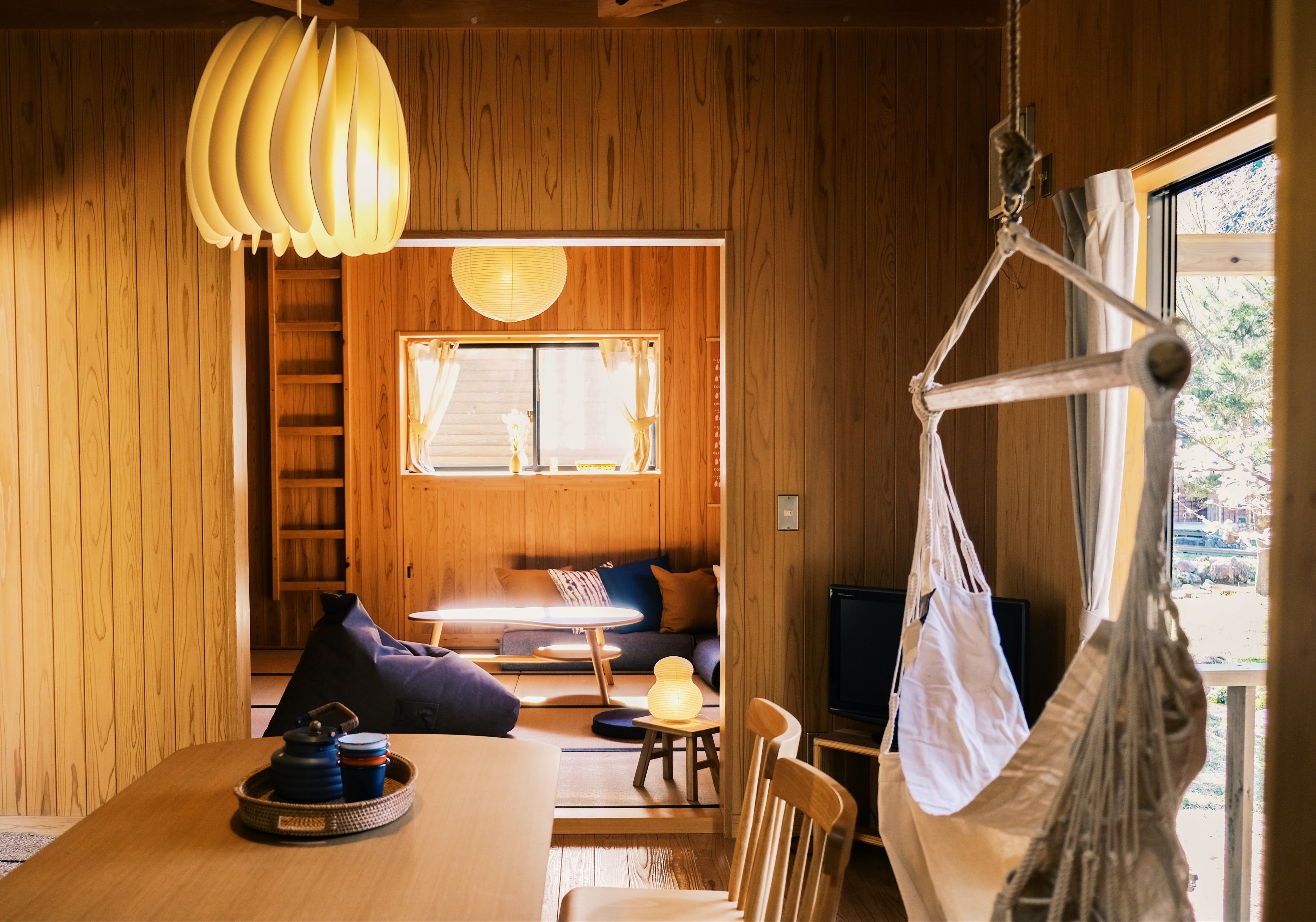 さらに、ロフトとハンモック付きの「グランピングバンガロー」にもご宿泊いただけます。「グランピングバンガロー」はキッチン・浴室・トイレも付いているので、お子様連れのお客様におすすめです。