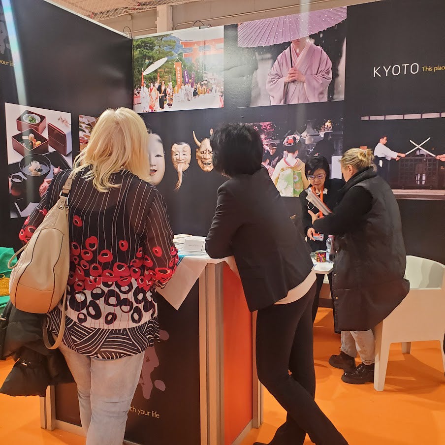 ルガーノでは、表彰式と併せて、ラグジュアリー層を顧客とする旅行会社(バイヤー)と高級ホテルや観光施設等(出展者)が多数集まる「スイス国際ホリデー展示会」が開催され、本市から初めて出展し、旅行先としての奥深い京都の魅力や京都観光モラルをはじめとする本市の先進的な観光の取組等、京都観光のPRを行いました。