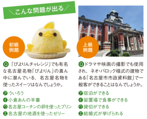 出題範囲:名古屋の観光スポット・歴史・文化・イベント・なごやめし・スポーツ等の観光に関する知識