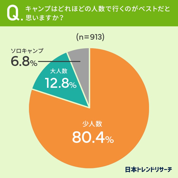 80.4%の方が「キャンプは少人数」派と回答しており、なかにはソロキャンやペットとのキャンプを楽しむ方も決して少なくないようです。