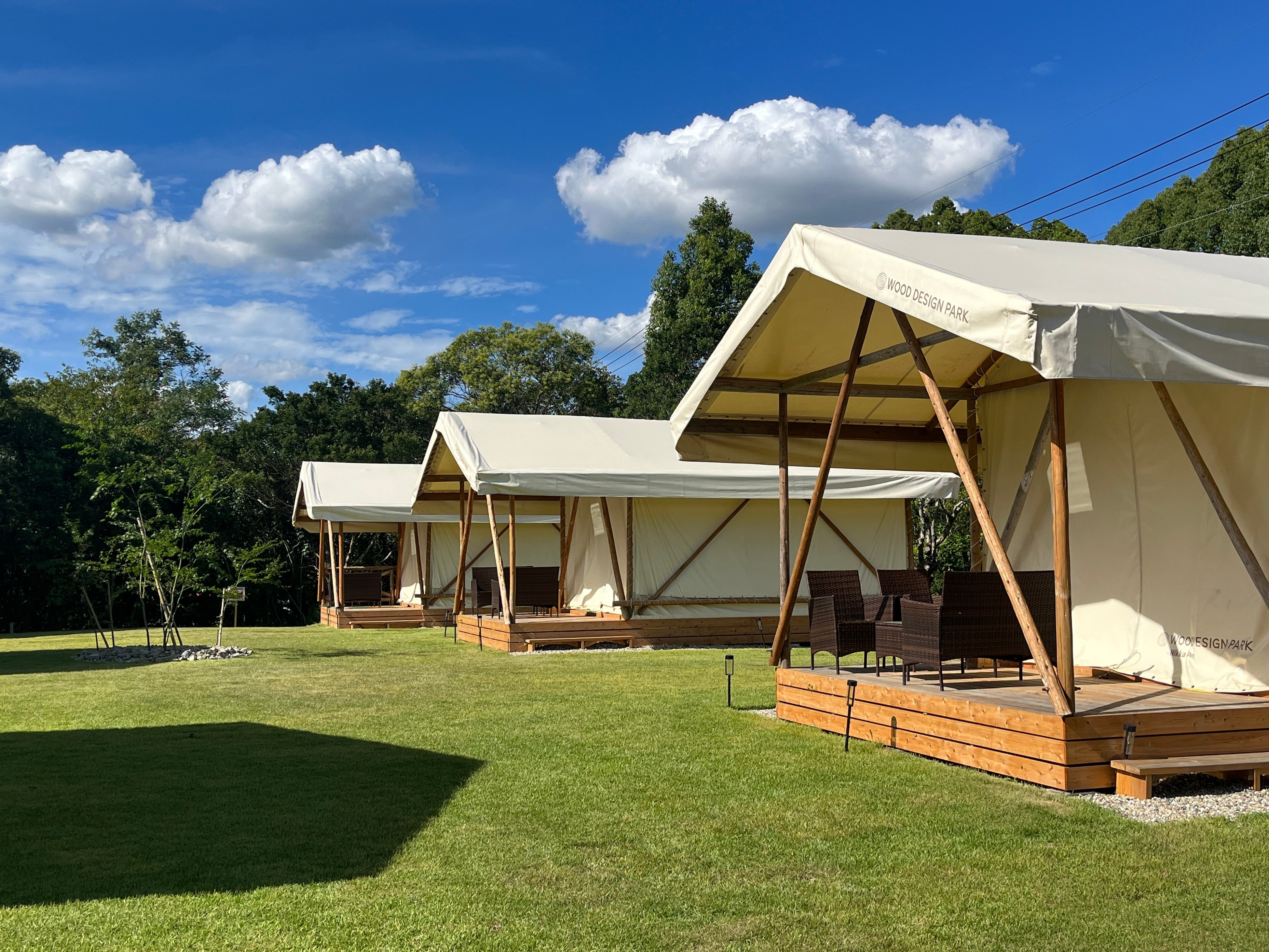ウッドデザインパーク 瀬戸店は、名古屋から車で30分、ジブリパーク(愛・地球博記念公園)からも車で3分という好立地にも恵まれた、2023年8月にオープンしたばかりの真新しいグランピング施設です。