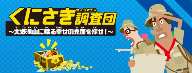 神と仏、2 つの信仰が融合した「六郷満山文化」が広がる大分県国東市。この地には遠い昔より鬼が棲むといわれている。そんな国東市には、人間と鬼の友好関係を示すため、人が鬼への愛情をこめて作ったお宝「幸せの鬼面」が隠されているらしい。このお宝は国東の地のどこかに眠っているとされているが、その広大な捜索範囲から今まで発見したものはいない。六郷満山に眠る「幸せの鬼面」を探すあなたの宝探しの旅がはじまります!