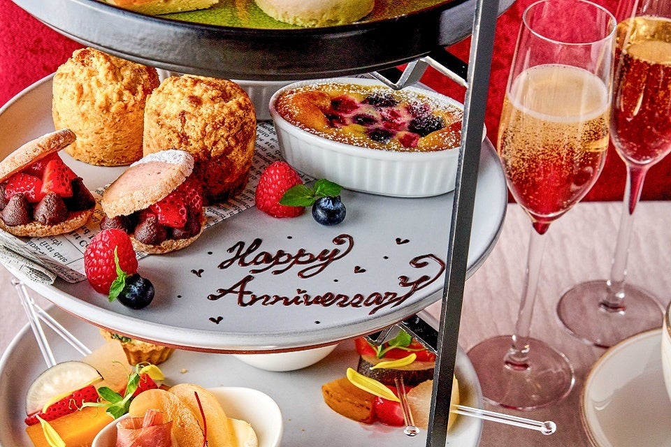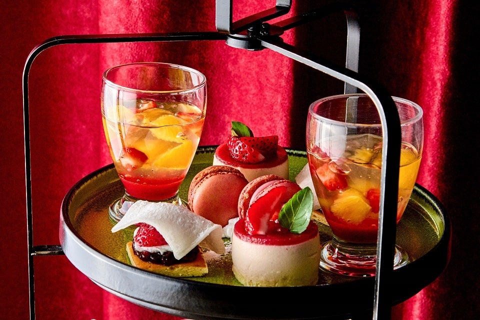 季節ごとにテーマを変えて提供しているアフタヌーンティー。今回は、ジューシーで甘酸っぱいいちごを使用したメニューに加え、アフタヌーンティーには欠かせないキュウリのサンドイッチやベジタブルスープが並んだウエルカムプレートが初登場します。まずは、おもてなしの気持ちを込めたプレートとお席からの景色をお楽しみください。