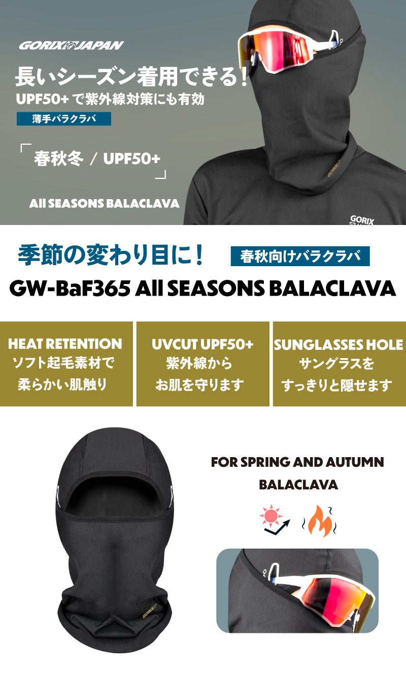 【新商品】【季節の変わり目に!!】自転車パーツブランド「GORIX」から、薄手バラクラバ(GW-BaF365)が新発売!!