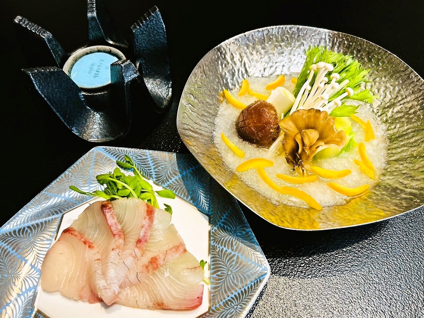 冬月ならではの厳しさの中にふと感じる冬の香りとともに、煮物の河豚蒸し煮や替鉢のぶりみぞれ金柑鍋をはじめ、