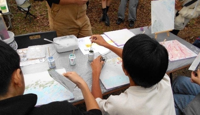 イベント当日は子ども・保護者51名が参加し、初日はテントの設営からバーベキュー、焚火を囲んでの団らん、温浴施設での天然温泉などを楽しみました。翌日は朝食にホットサンドの調理、ジャザサイズ(ダンスフィットネス)、漆喰アート、木工ペイントなどを行いました。