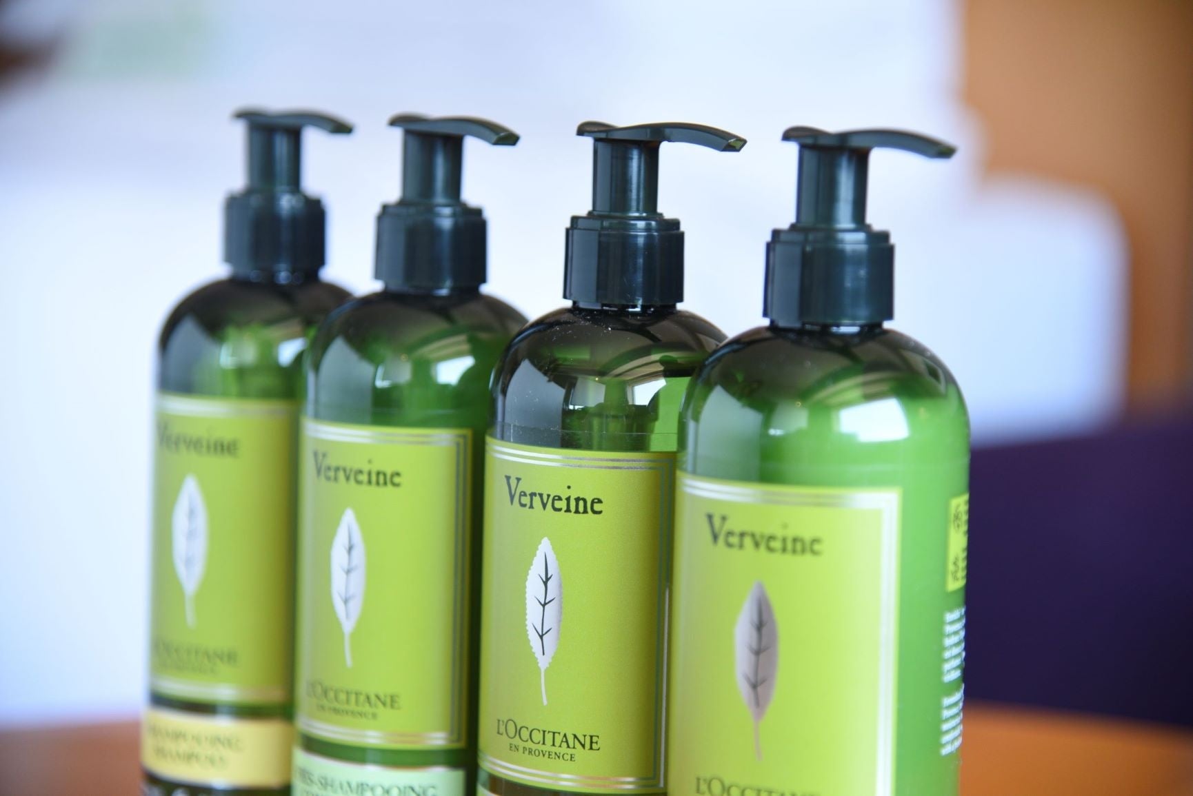 ロクシタンを代表するフレグランスシリーズ「ヴァーベナ」はレモンを思わせる柑橘系のような爽やかな香りで、男女問わず愛されています。そのプロヴァンスを代表するハーブがボトルに施された製品は、ホテルアメニティ用に特別に開発され、ボトルに再生プラスチックを使用しています。「ヴァーベナ」シリーズのアメニティは、シャンプー・コンディショナー・シャワージェル・ハンド&ボディローションの4製品、「シトラスヴァーベナ」シリーズのアメニティはシャンプー・コンデイショナー・シャワージェル・ボディローションの4製品がお部屋タイプにより、客室バスルームに設置されます。