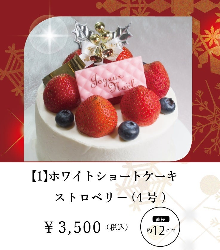 【01】ホワイトショートケーキ ストロベリー 4号(12cm-3〜5⼈前) ¥3,500