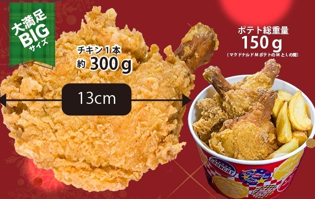 特製フライドチキンレッグとフライドポテトのセット。ビッグサイズで、食べ応え満点!しっとりジューシーなお肉にかぶりついてください。