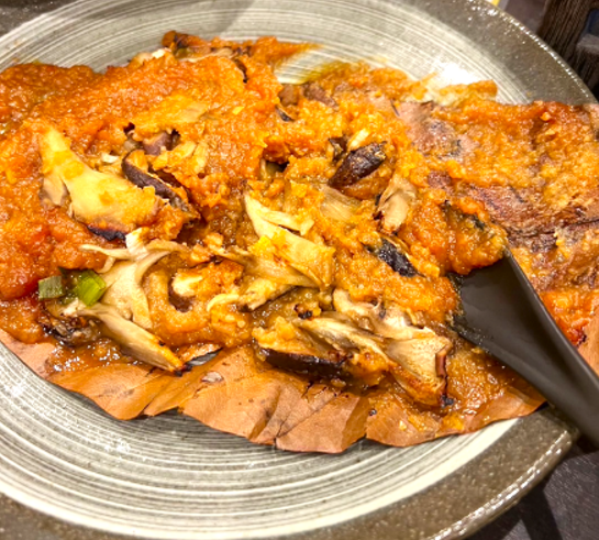 朴葉味噌は、味噌にネギやしょうがなどの薬味やきのこ類・山菜などを混ぜ、朴の木の葉「朴葉(ほおば)」に乗せて焼いたものです。