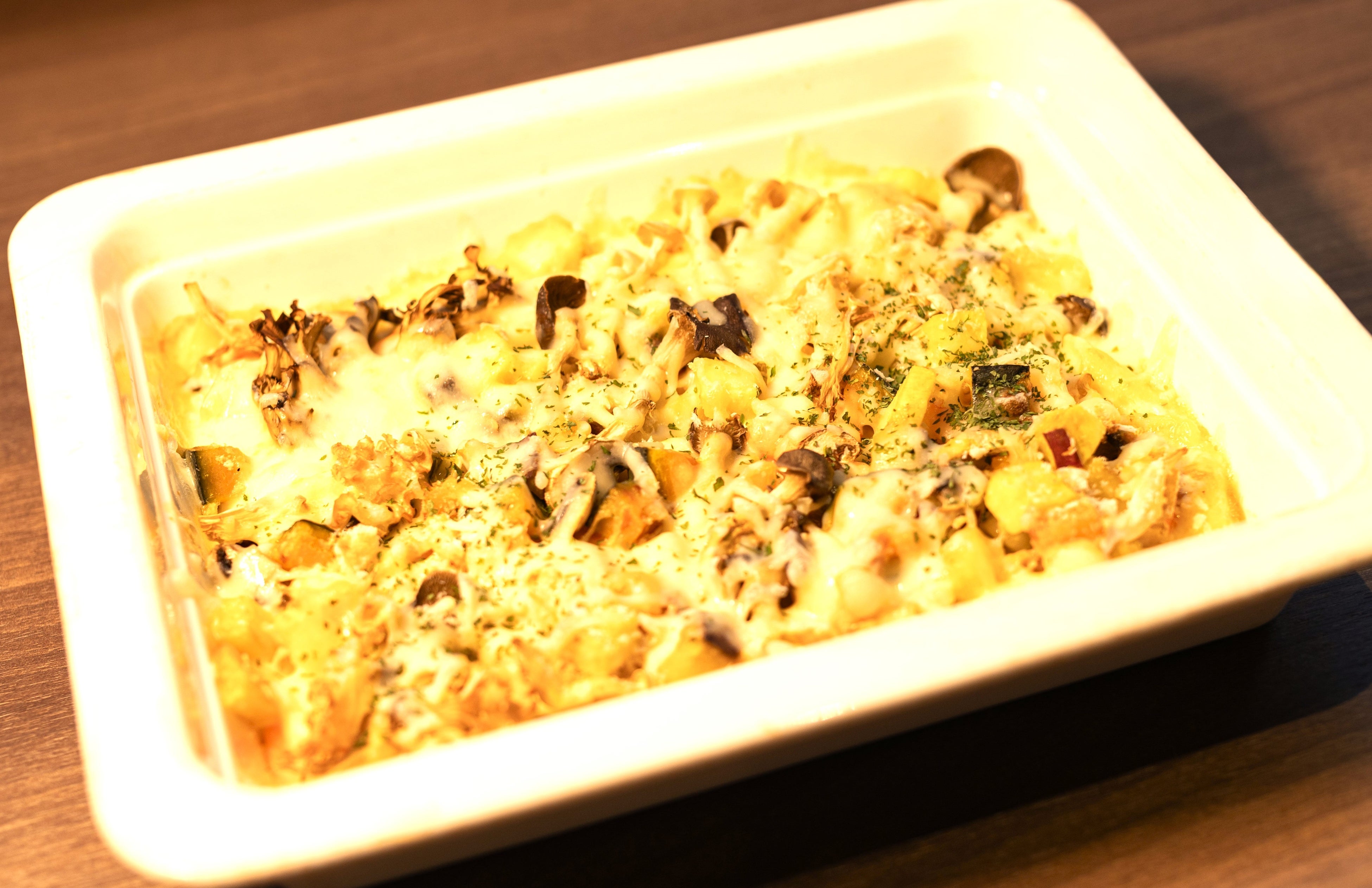 これからの季節にピッタリ、信州産キノコ5種類と旬の秋野菜たっぷりの熱々グラタン