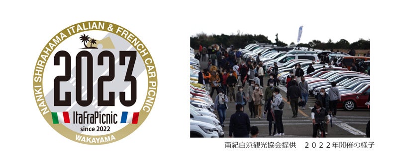 南紀白浜空港旧滑走路に、イタリアやフランスなどの車が一堂に会するイベント『南紀白浜イタフラピクニック2023』に協賛及びブース出展