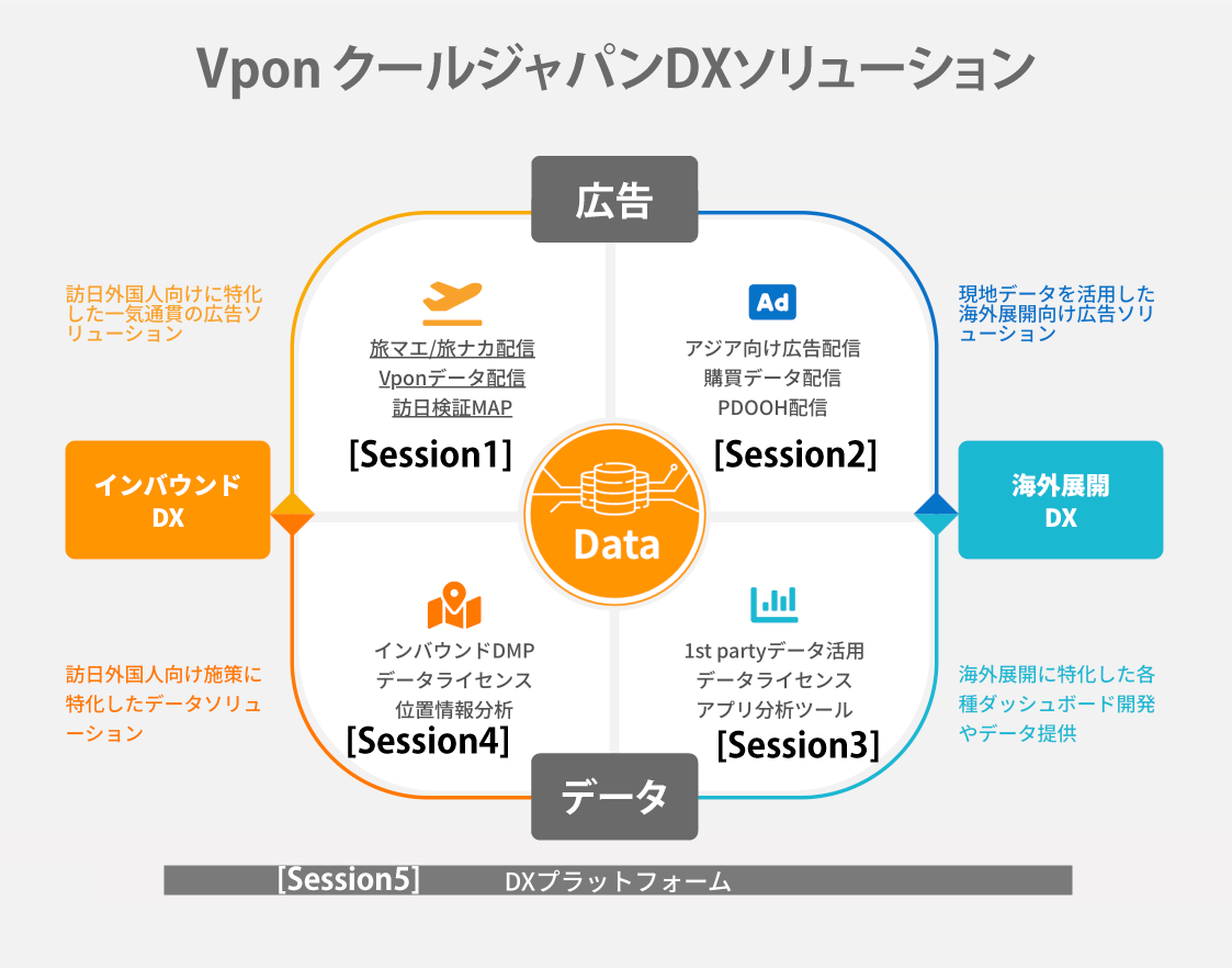 10月上旬に開催したクールジャパンDXサミット(https://www.cooljapan-dxsummit.com/)から1ヶ月が経過しましたが、Vpon JAPANが提供できる具体的なソリューションについてのお問合せが急増しております。そこで、Vpon JAPANの事業ディレクターがリアルなソリューションの中身と事例をご紹介し、実際に海外需要をどう捉えていくのかをイメージしていただける内容で皆様にお届けいたします。