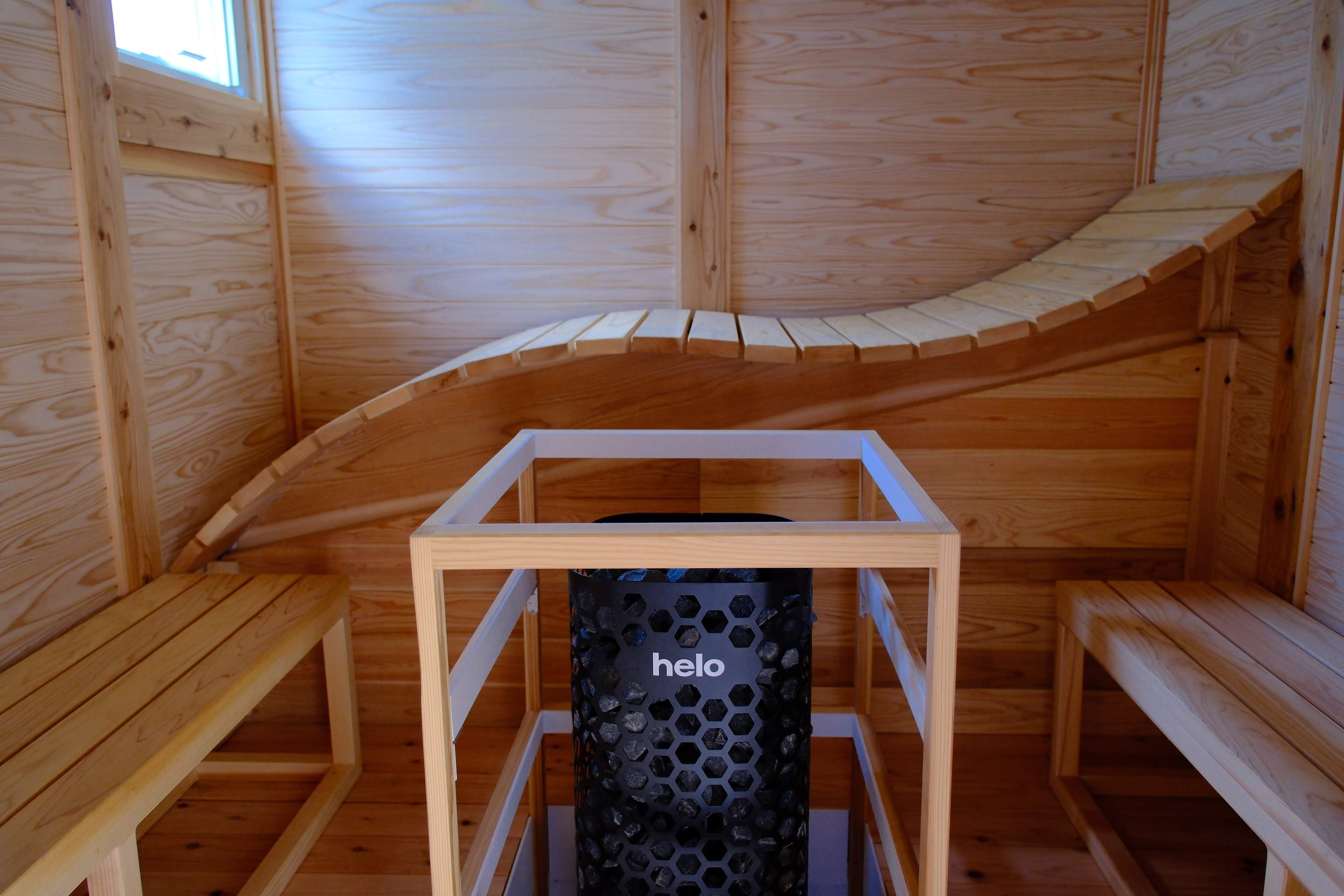 客室には富士山の溶岩石を使ったプライベートサウナを設置。富士山周辺の自然素材で蒸留したアロマによるロウリュウやオリジナルのサウナポンチョを着て楽しむ外気浴スペースで贅沢にトトノウ体験を提供します。