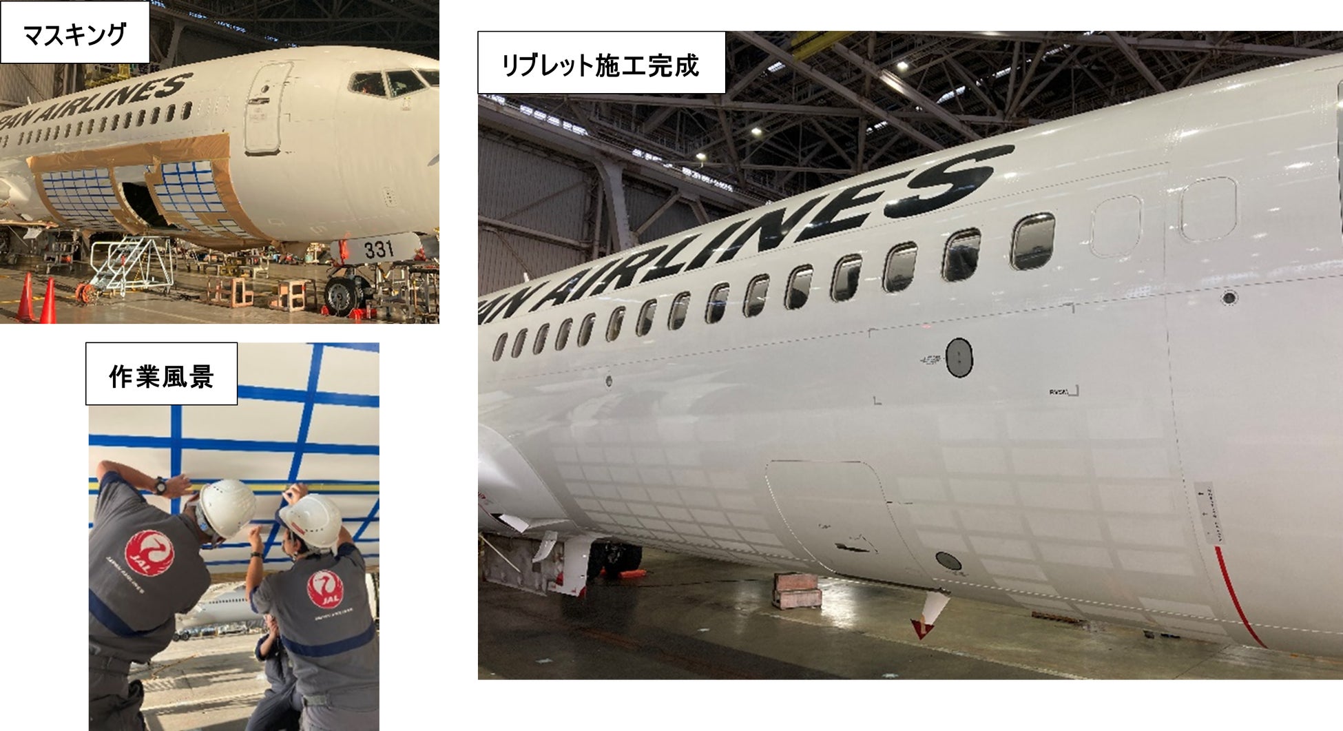 JALは、国立研究開発法人宇宙航空研究開発機構(以下「JAXA」)、オーウエル株式会社(以下「オーウエル」)と共に、航空機の燃費改善によるCO2排出量削減を目指し、Paint-to-Paint Method(*1)を用いて機体外板の塗膜上に約60cm2のリブレット(*2)を施工した航空機(ボーイング737-800型機)による飛行実証試験を、2022年7月より進めてきました(*3)。