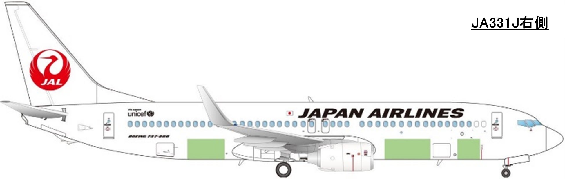 これらの工夫や検証の結果、航空機外板への大面積施工が可能と判断し、2023年11月、ボーイング737-800型機の国内線機材1機(JA331J)の胴体下部に、合計約25m2のリブレット形状を施工(下図緑部分)することに成功しました。