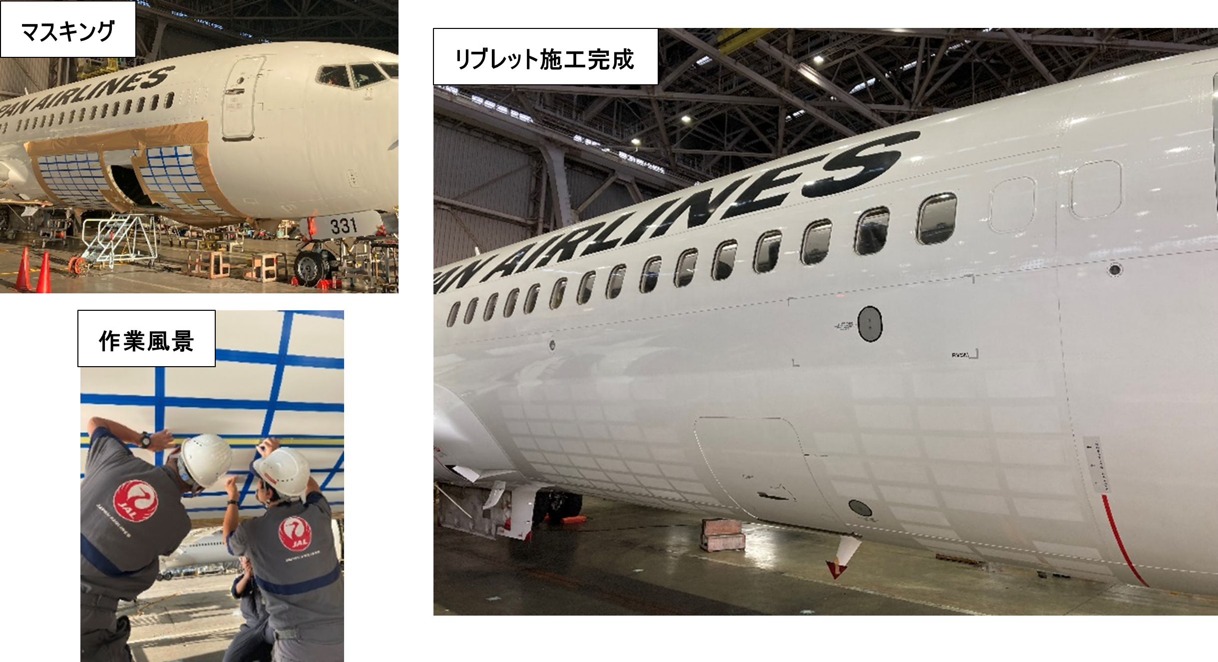 JALは、国立研究開発法人宇宙航空研究開発機構(以下「JAXA」)、オーウエル株式会社(以下「オーウエル」)と共に、航空機の燃費改善によるCO2排出量削減を目指し、Paint-to-Paint Method(*1)を用いて機体外板の塗膜上に約60cm2のリブレット(*2)を施工した航空機(ボーイング737-800型機)による飛行実証試験を、2022年7月より進めてきました(*3)。