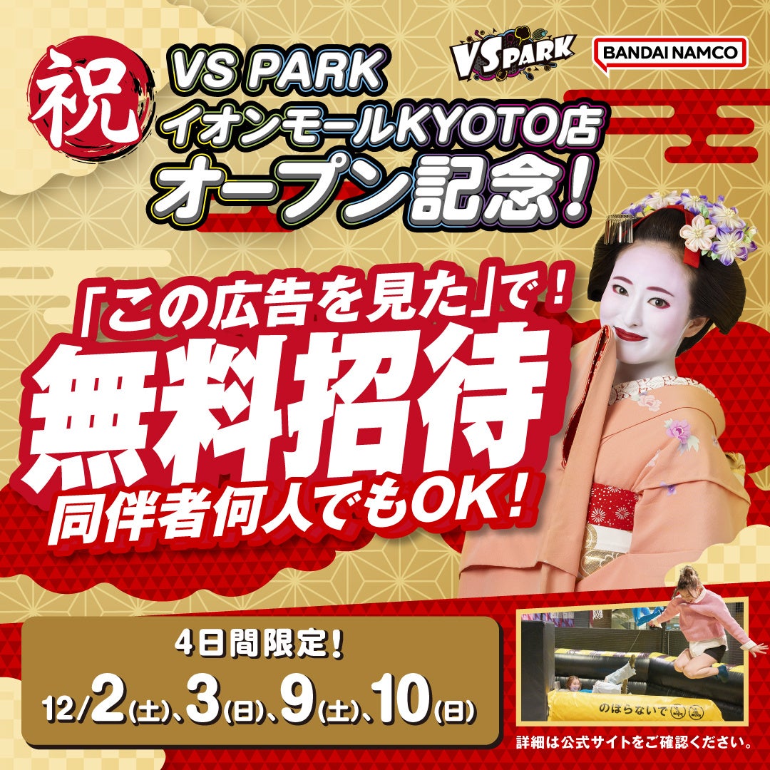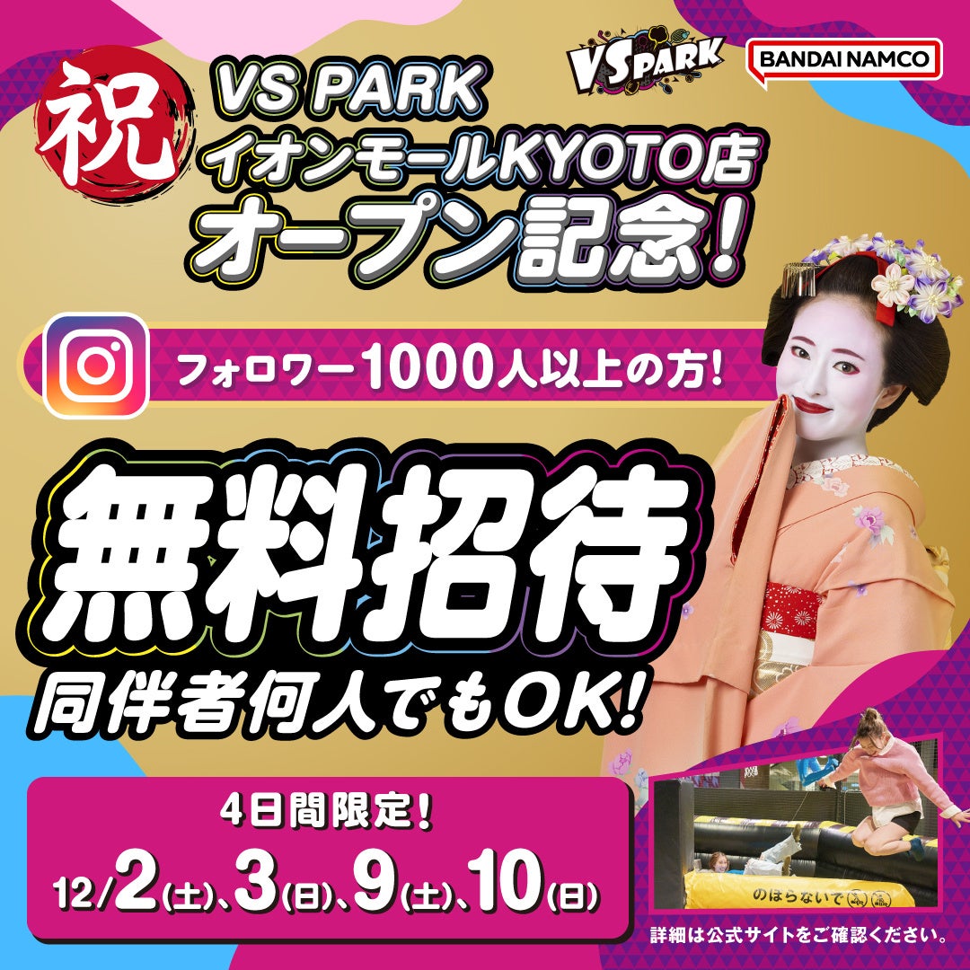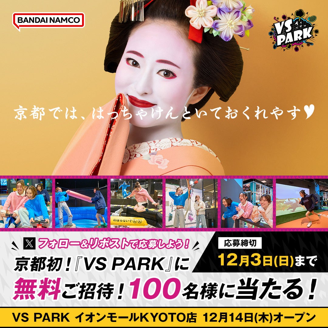 抽選で100名さま無料ご招待!VS PARK イオンモールKYOTO店公式Xフォロー・リポストキャンペーン!