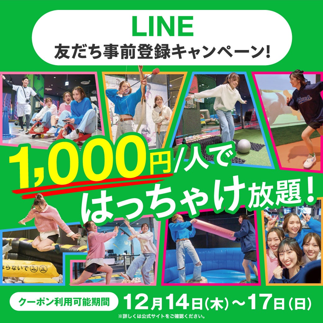 店舗公式LINE友だち事前登録キャンペーン 概要 [期間]事前登録期間:10月24日(火)~12月13日(水) クーポン使用可能期間:12月14日(木)~12月17日(日) [内容]10月24日(火)~12月13日(水)の期間中、店舗公式LINEを友だち登録してくれた方に、12月14日(木)~17日(日)の4日間限定、120分1,000円でVS PARKを楽しめるクーポンをプレゼント! ■使用方法 受付にてLINEクーポン画面を提示してください。 ■注意事項 ※本キャンペーンのご利用にはLINE友だち登録が必要です。 ※本キャンペーンは120分料金のみ対象です。 ※延長料金・絶叫体験エリアは適用外です。 ※他サービス・割引との併用はできません。 ※本キャンペーンの払い戻し(換金)はできません。 ※詳しくはニュースサイトをご確認ください。 [ニュースサイト]https://bandainamco-am.co.jp/game_center/loc/vspark-kyoto/NEWS/20231020_line.html |