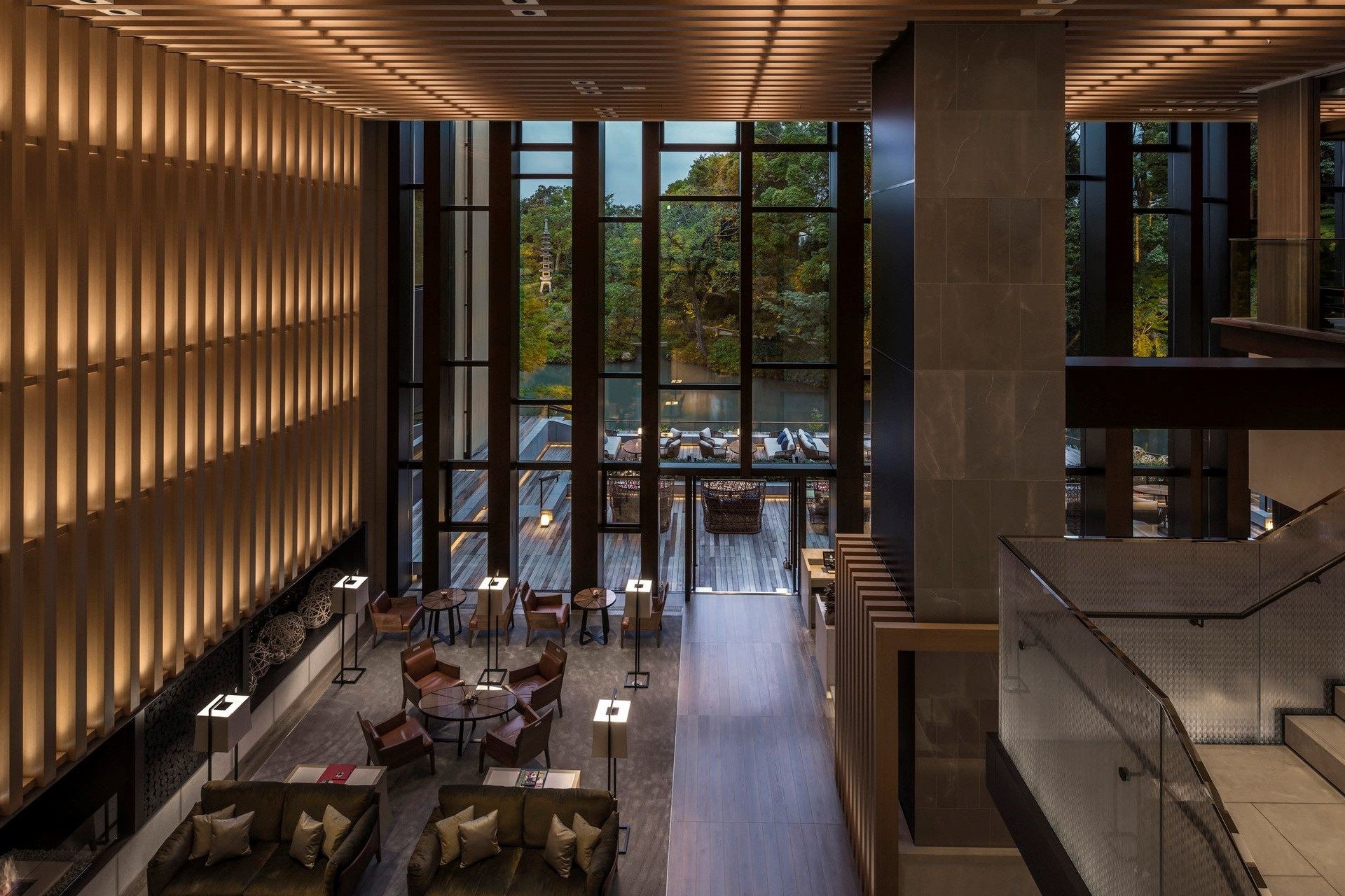 2016年10月に開業したフォーシーズンズホテル京都は、平家物語にも記された800年の歴史を受け継ぐ名庭「積翠園」を擁するラグジュアリーホテルです。ホテル1階に位置する「ブラッスリー」は、高さ9メートルの大きな窓からその名庭を見渡し、店内にはスタイリッシュな空間が広がります。庭園を見渡すテラスを備えたその開放的なインテリアデザインは、「Kokai Studios(コカイ・スタジオ)」によって手がけられ、国際的なインテリア専門誌「INTERIOR DESIGN(インテリアデザイン)」におけるベスト・オブ・イヤーアワード、ホテルダイニング部門において2017年のショートリストに選ばれています。