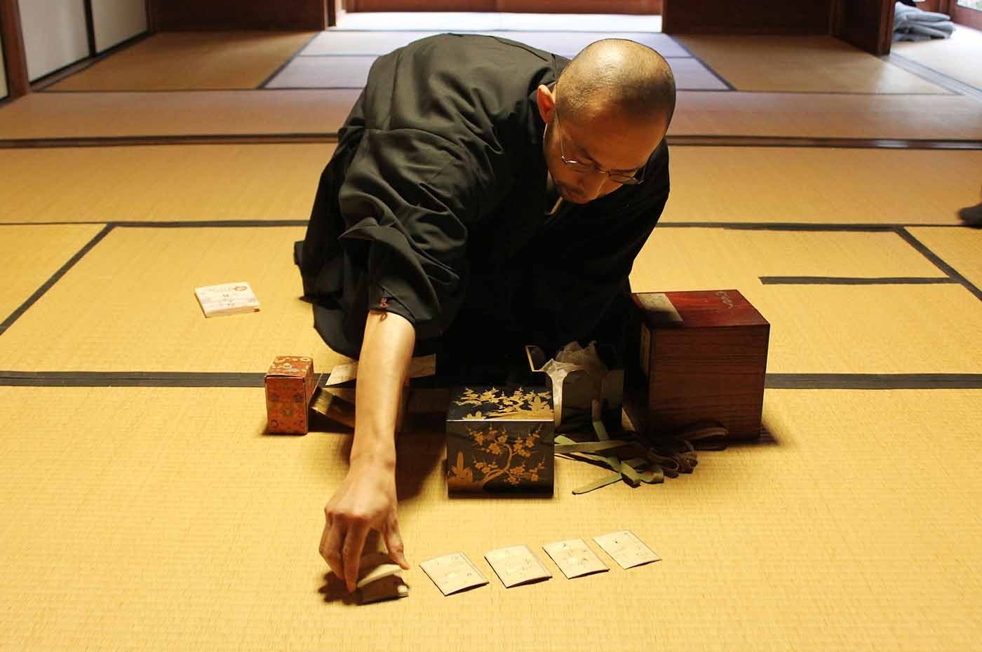 和歌は平安貴族にとって自分の思いを伝える言葉であり、また優れた教養の証でありました。この体験は、百人一首発祥となった和歌の聖地で、通常は入れない「厭離庵」を貸切って行います。百人一首ゆかりの道具に触れ、ご住職のお点前と和菓子を堪能しつつ、和歌に込められた情緒に触れながら、百人一首遊びを楽しみます。