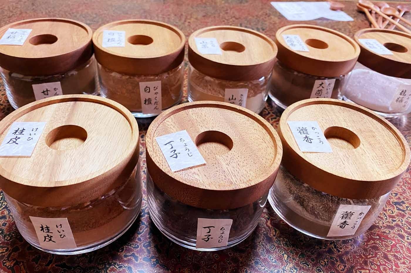 仏教とともに日本に伝わったお香は、平安貴族たちの手によって個性や魅力を表現するおしゃれアイテムへと進化を遂げました。老舗お香専門店「天香堂」で行われる体験は、このツアーだけの特別なものです。店主の知見をお借りしながら、平安時代と変わらない原料を古来の製法で自分好みの香りに調合します。