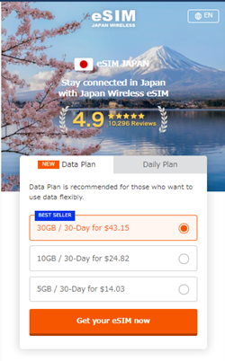 ・訪日外国人向け eSIMサービス「Japan Wireless eSIM」 :https://www.japan-wireless.com/esim