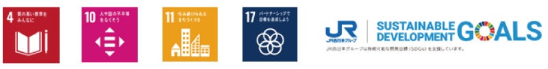 JR西日本ホテルズは、持続可能な開発目標(SDGs)を持ち、地域と共に、お客様一人ひとりの豊かな人生を広げます。今回ご案内の取り組みは、SDGs 目標の 4番,10番,11番、17番に貢献するものと考えています。