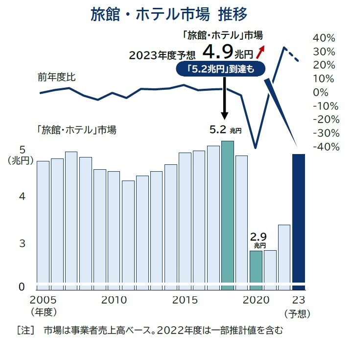 2023年度の「旅館・ホテル」市場、4.9兆円予想 過去最高5.2兆円超えも