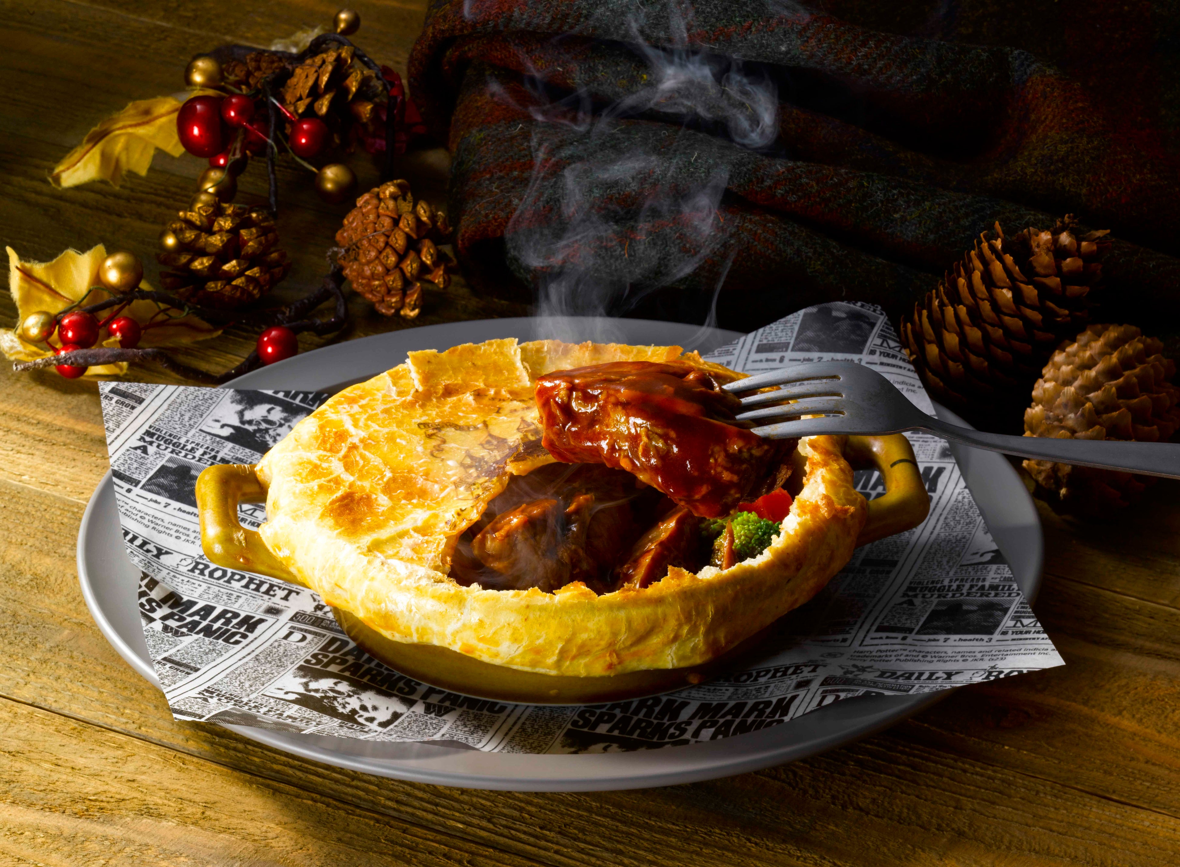 やわらかく煮込んだ冬の定番、ビーフシチューを忍びの地図をプリントしたパイで焼き上げました。