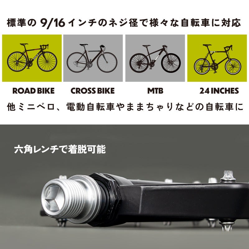 六角レンチで交換可能なのでペダルの取り付けも簡単に。