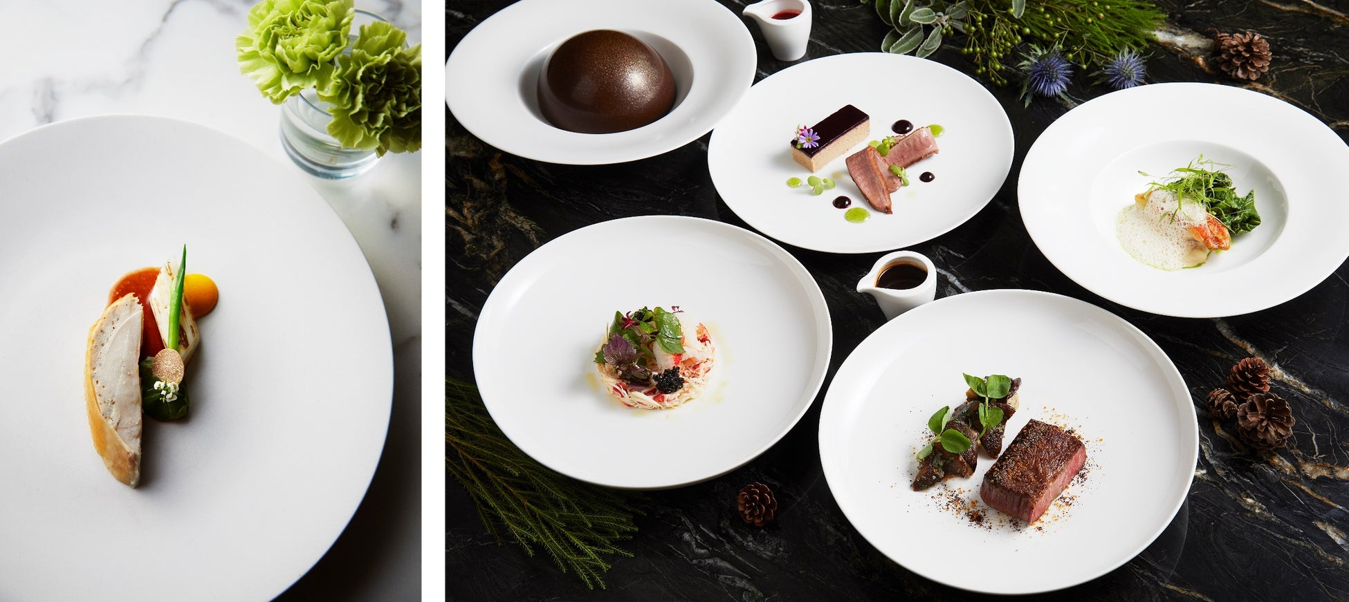 ディナー 6品コース 25,000円/ディナー 7品コース 30,000円 ワインペアリング +26,000円から