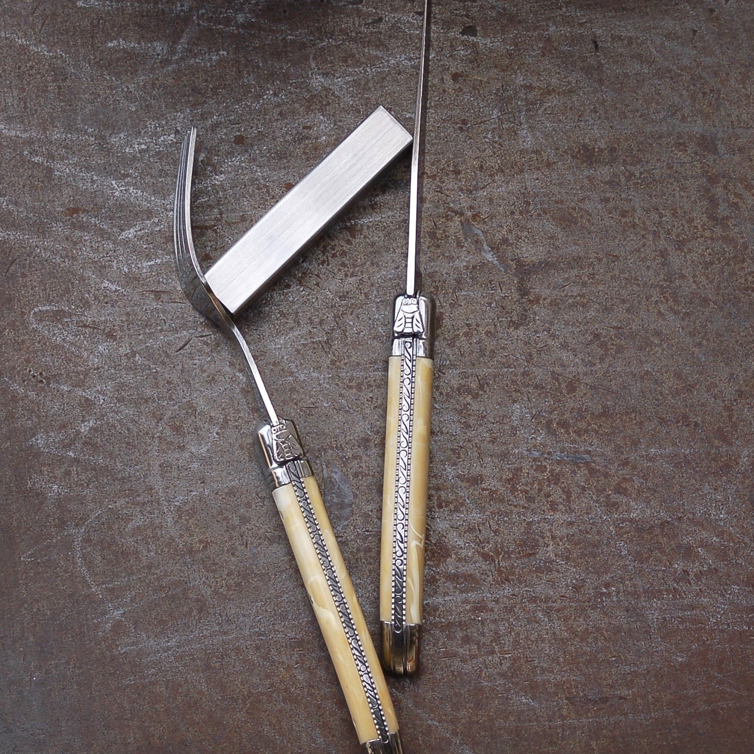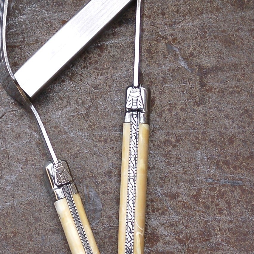 ナイフ、フォークともにハンドルにライヨールのミツバチ