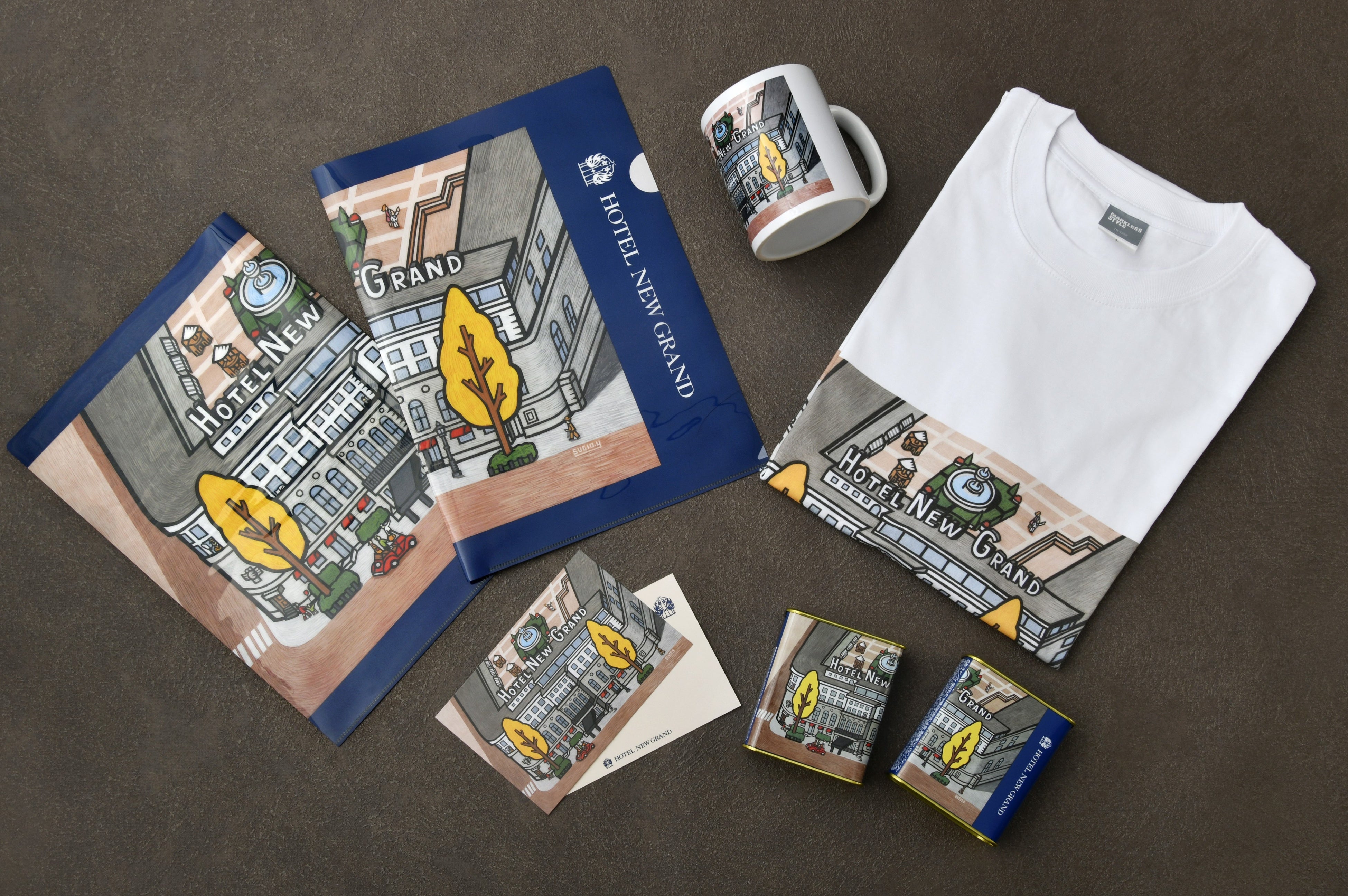 イラストを手掛けたのはイラストレーター兼絵本作家の山﨑杉夫氏、ノスタルジックな風景にポップアートのセンスを散りばめたような大人の遊び心をくすぐるお洒落なタッチで、ホテルニューグランドの本館や山下公園通りの銀杏並木を描いたイラストデザインを使用したシリーズ商品です。1927年の開業より時を刻む石造りの本館には、昭和を代表する文豪であり愛猫家で知られる大佛次郎の飼い猫や連合国軍最高司令官ダグラス・マッカーサーなど、ホテルに滞在した歴史上の人物にまつわるエピソードを描き、変わりゆく時代とともに歴史を積み重ねてきたホテルの物語を表現したオリジナリティあふれるイラストが魅力です。ホテルご来館の記念やお土産、また、贈り物などにいかがでしょうか。