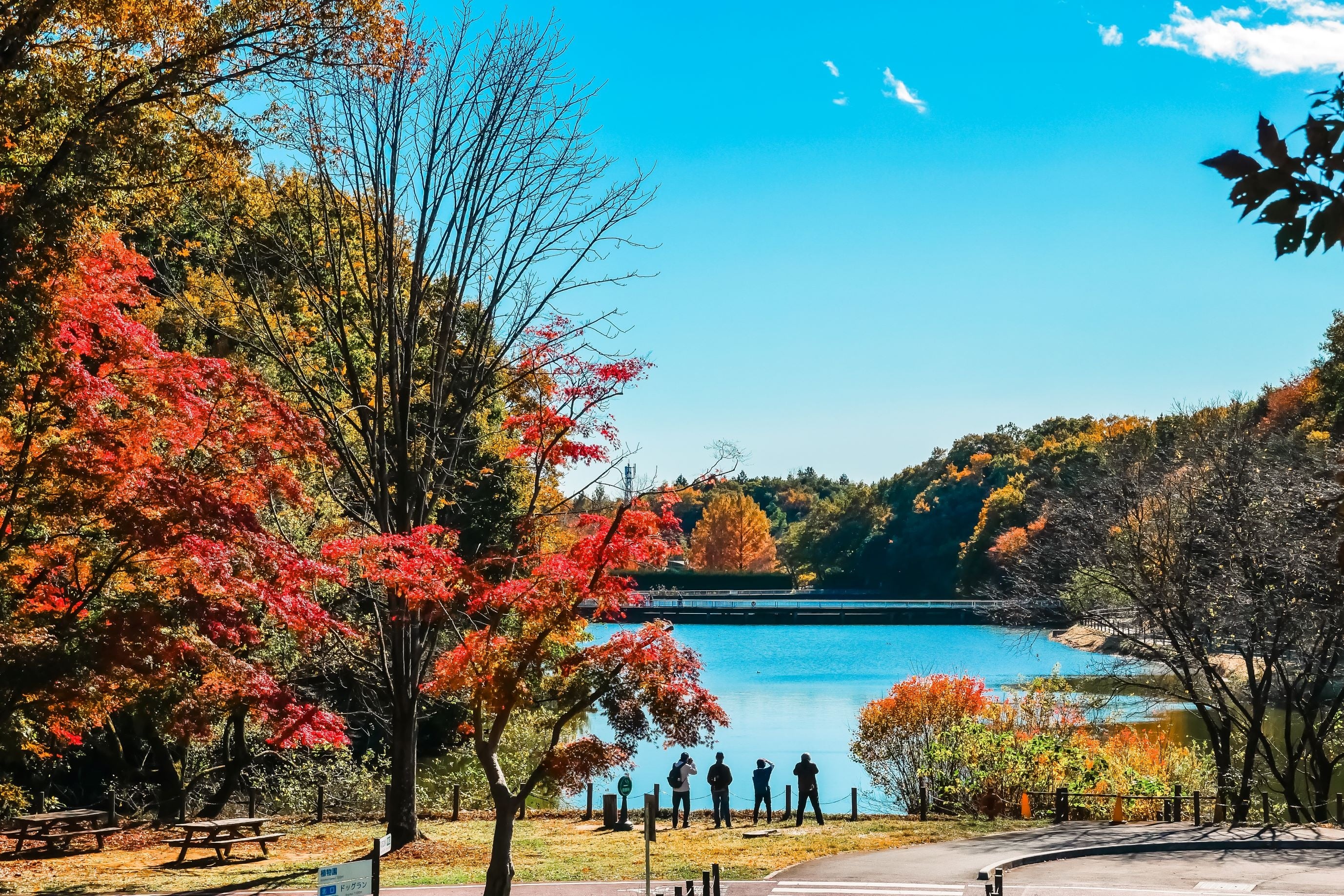 秋の深まりとともに、公園全体がまるで魔法に包まれたように、紅や黄に染まる葉で鮮やかに彩られます。特に注目すべきは、見頃を迎えるカエデ園で、約20種500本のカエデが織り成す赤やオレンジ、黄金色に輝く葉の色や形の多様性が楽しめます。