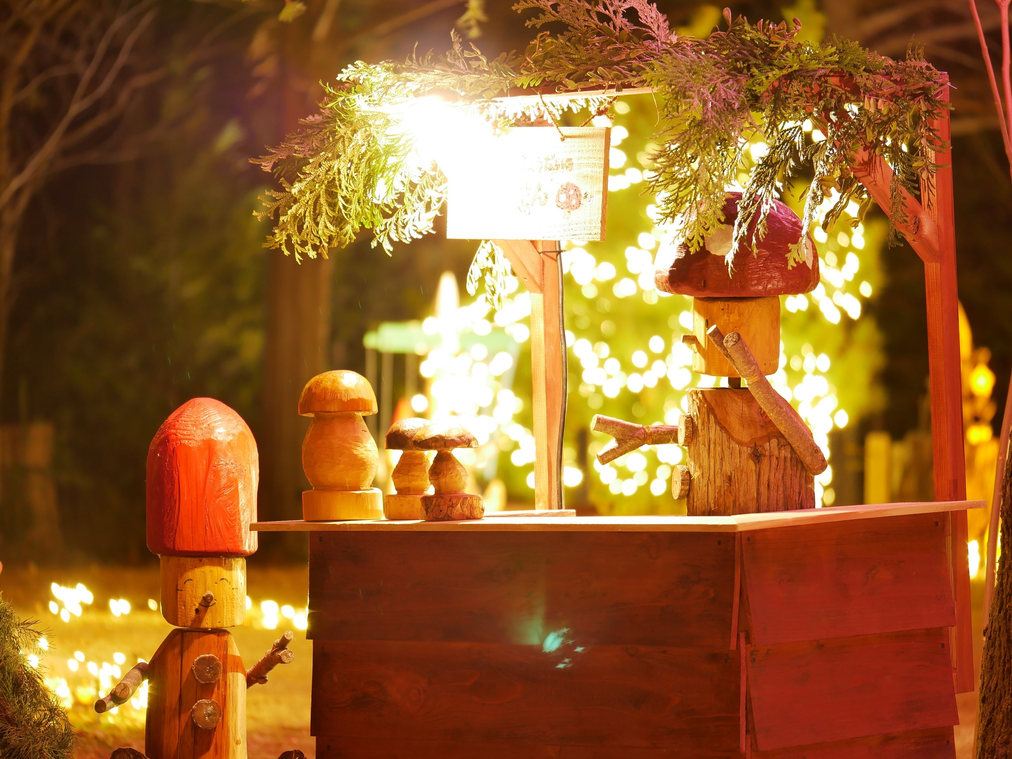 針葉樹見本園ではモーリーたちがクリスマスマーケットを開催。