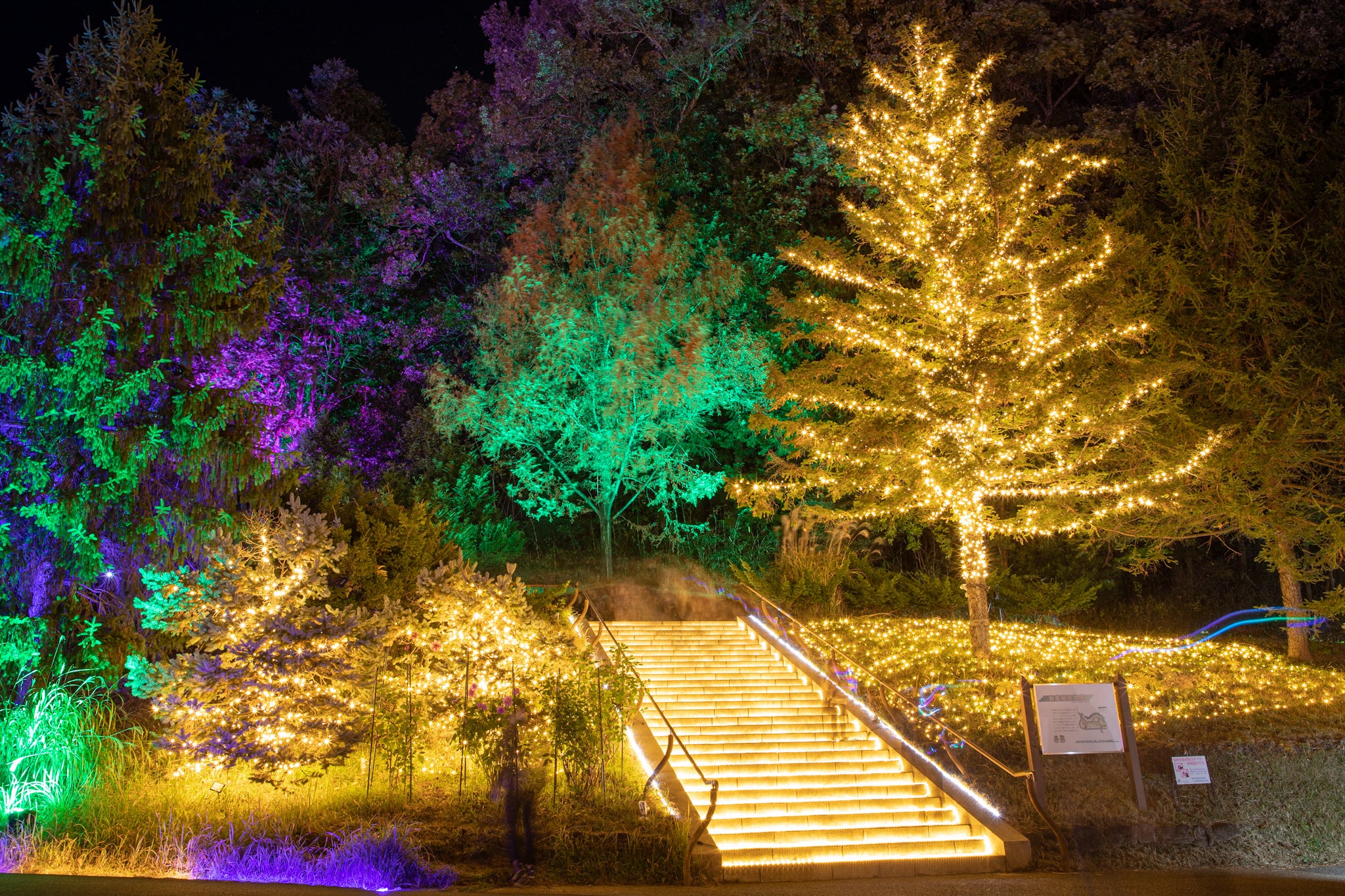様々な樹木が作り出す美しい風景が広がる森林公園にぜひご来園いただき、秋の自然とライトアップのハーモニーを楽しんでください。