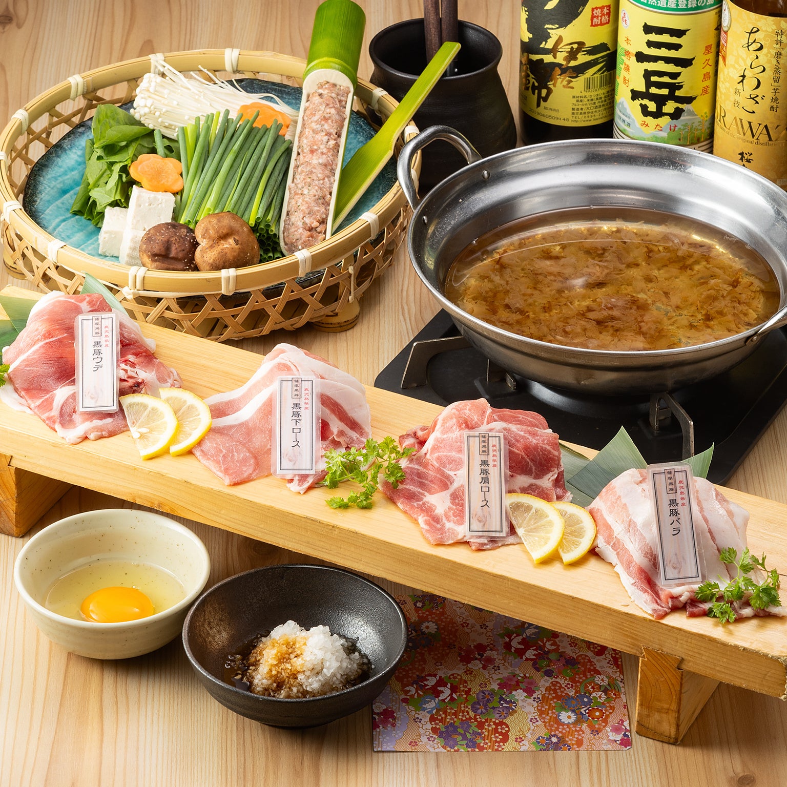 黒豚はバラ、下ロース、肩ロース、ウデの4種類のお肉を味わえる、鹿児島でも珍しいしゃぶしゃぶをくろ屋はお届けします。