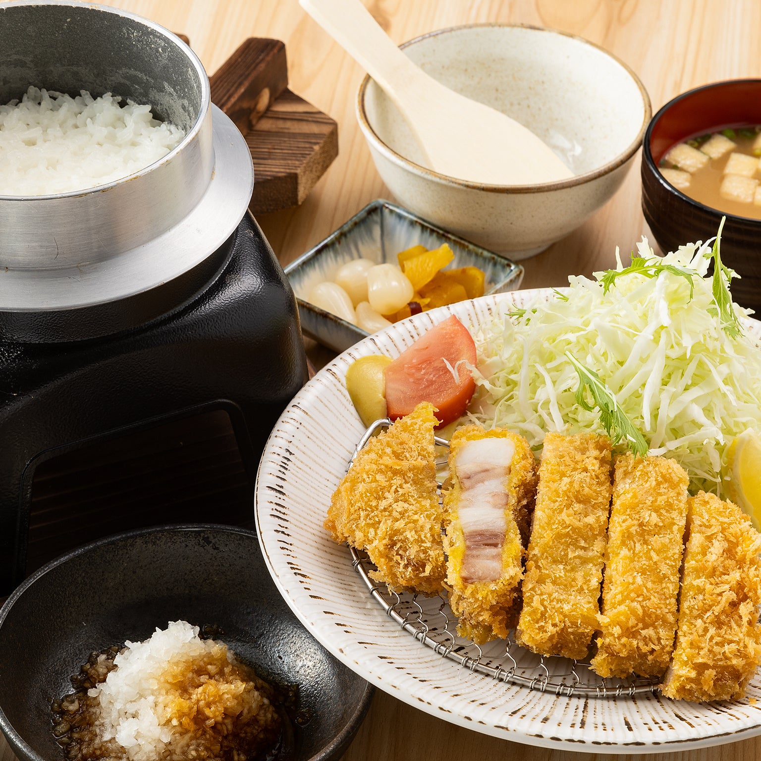 〇ひなもりポークとんかつと釜めし定食¥1,300