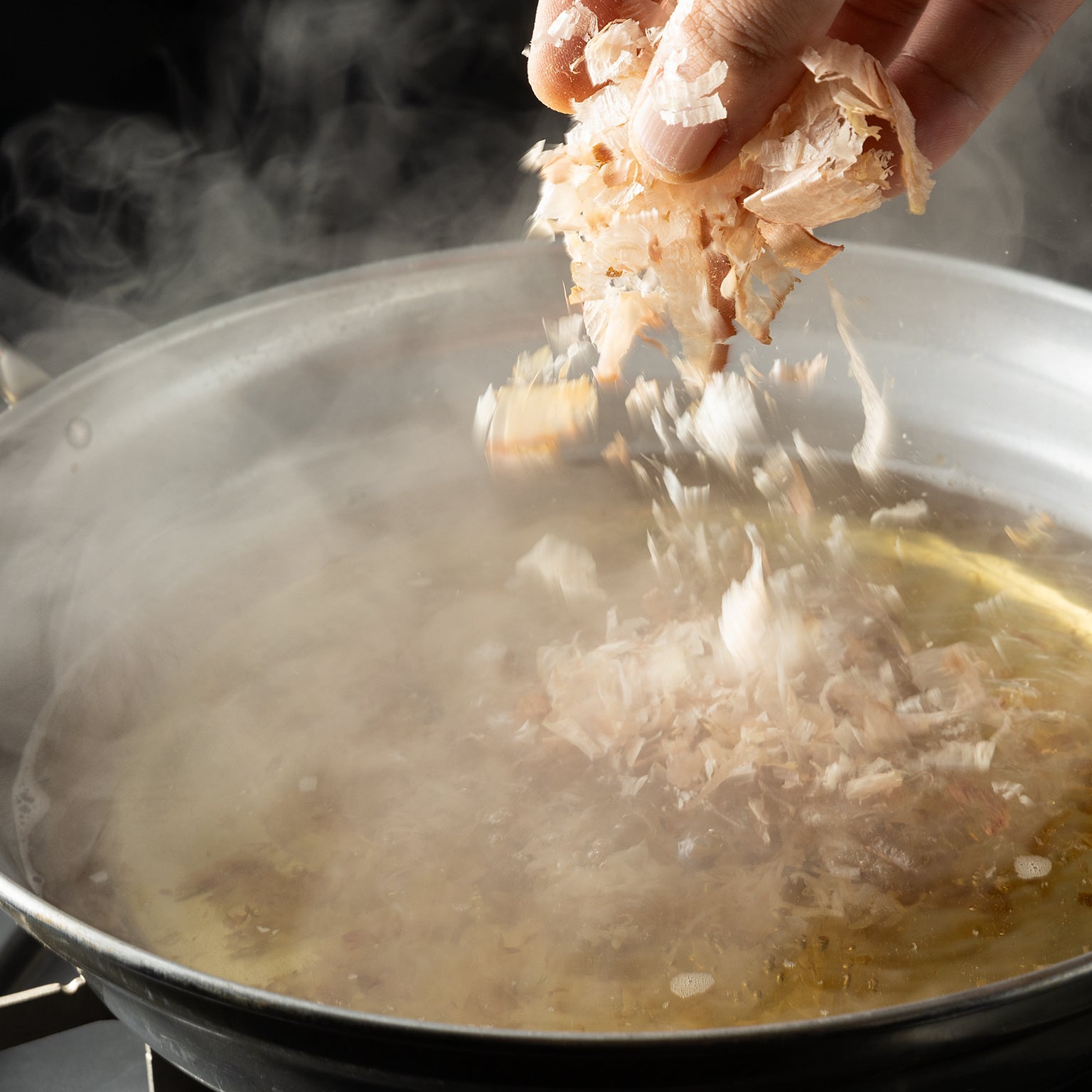 お出汁は自家製鶏出汁をはじめとした5種類をご用意しております。