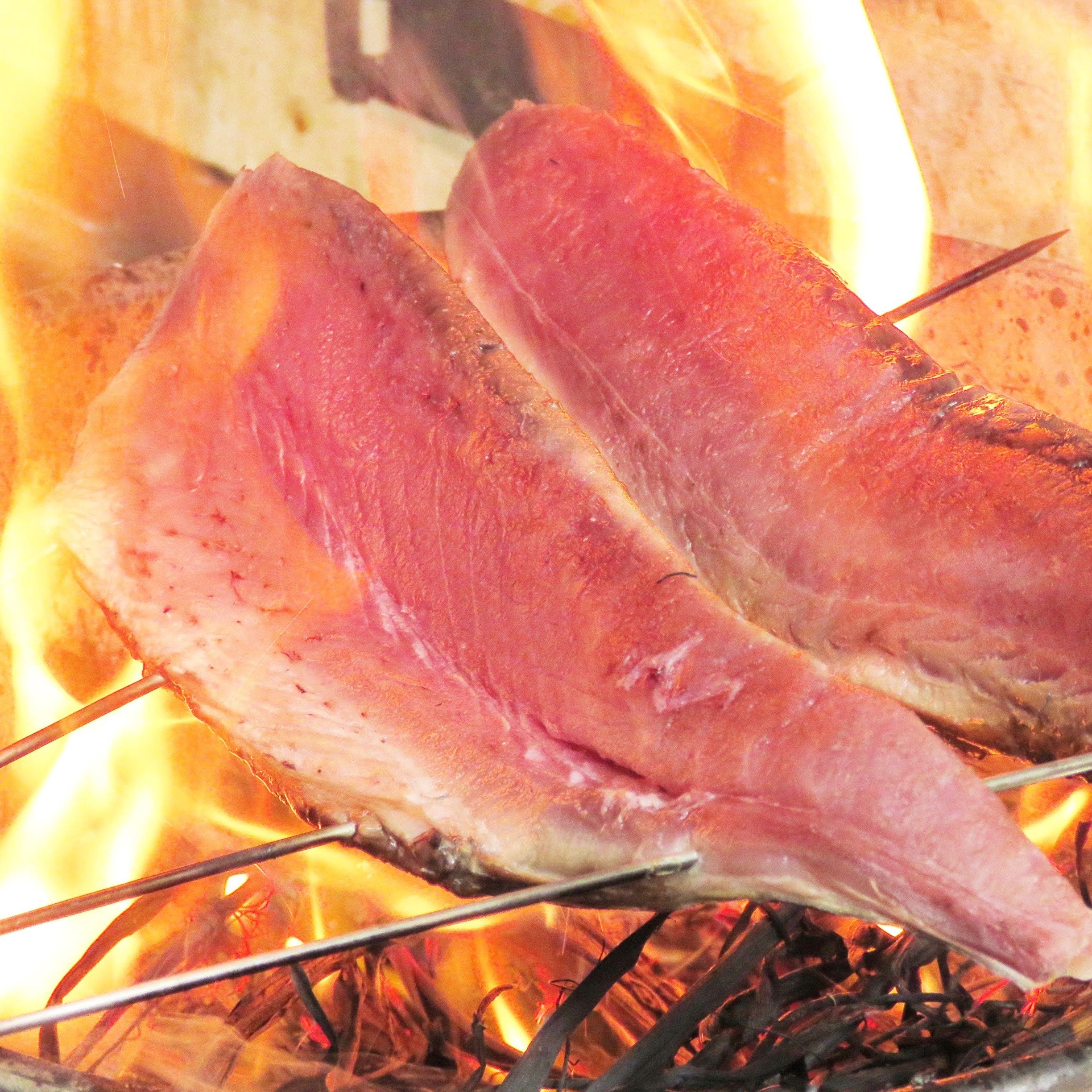 良質の脂身、鮮やかな赤い身、濃い旨味が特徴の『黒い海のダイヤ』を、藁で燻し旨味を凝縮させます。
