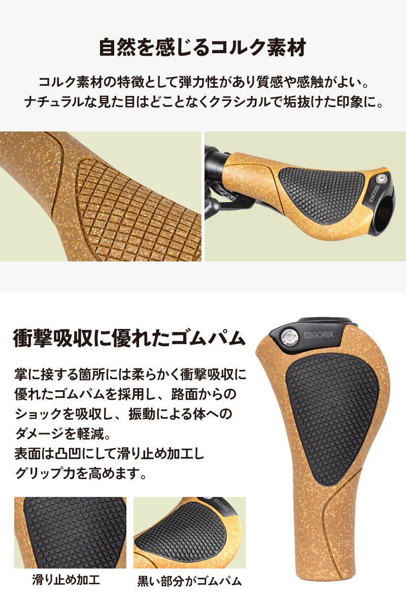 自転車パーツブランド「GORIX」の新商品の「コルク素材のエルゴグリップ(G.OAK) 」は