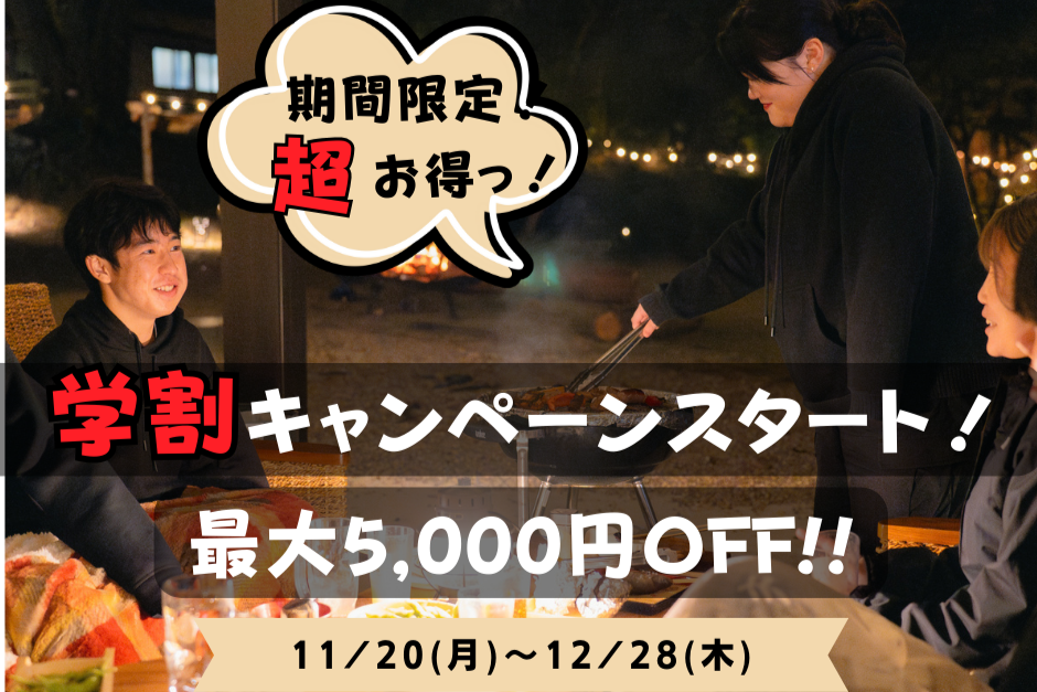 【冬の学割プラン】最大5,000円OFF!大切な仲間とグランピングを楽しもう!