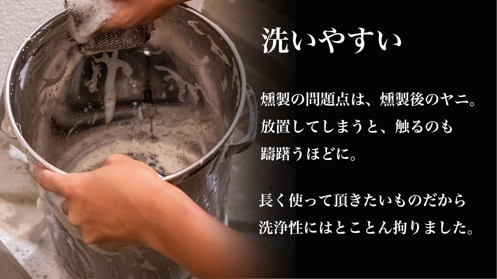 燻製器はヤニや油で汚れやすい製品です。