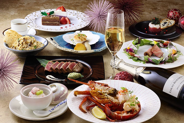 2種類のコースをご用意。『聖夜』はオマール海老、『天華』は伊勢海老を鉄板で巧みに焼き上げます。どちらのコースも滋賀県が誇る美味「近江牛ローストビーフ リーフ仕立て」と、メインには近江牛の鉄板焼をご用意。乾杯用のシャンパン(またはノンアルコールスパークリング)付きで美食に酔いしれるひとときを。
