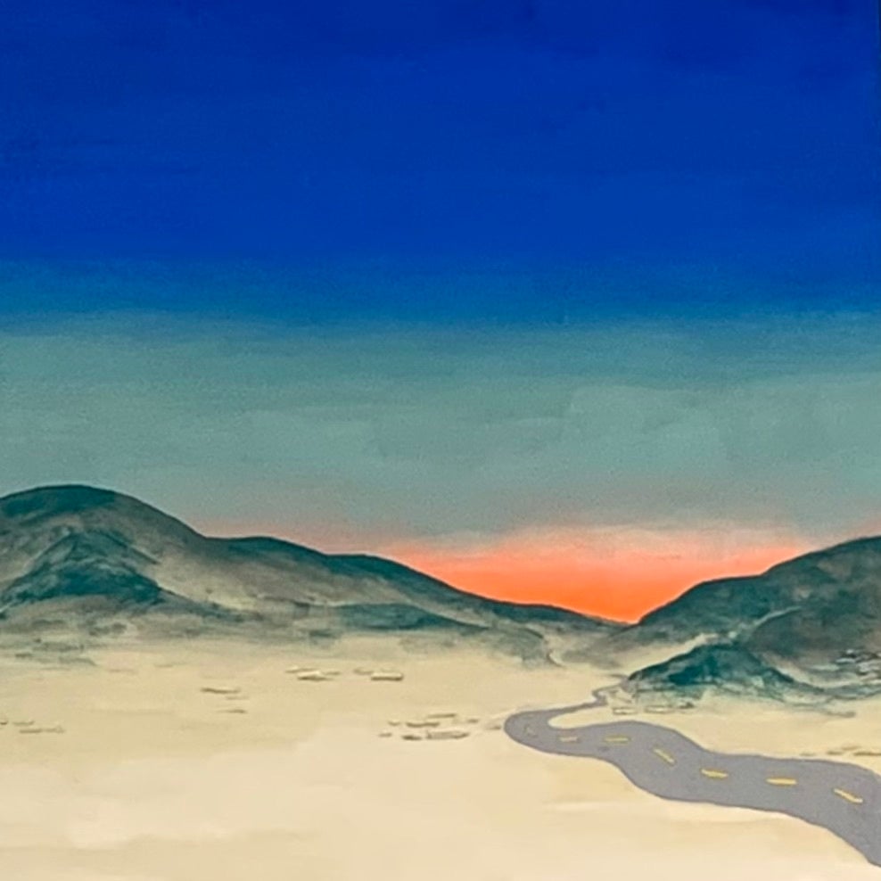 荒井颯子は、1999年京都府生まれ。現在多摩美術大学大学院 美術研究科に在籍しながら、架空の世界に生きる人物を日本画の技法で描くアーティストです。自分自身の経験や感情ではなく、自身が作った風景と映画や写真などのイメージを組み合わせた作品は、異国情緒あふれる独特の世界観を持っています。発色性の高い岩絵具とその質感によって、現実世界ではなく架空の世界であることを強調し、無表情に描かれた人物は、現代社会の寂しさやささやかな幸福を示唆しています。