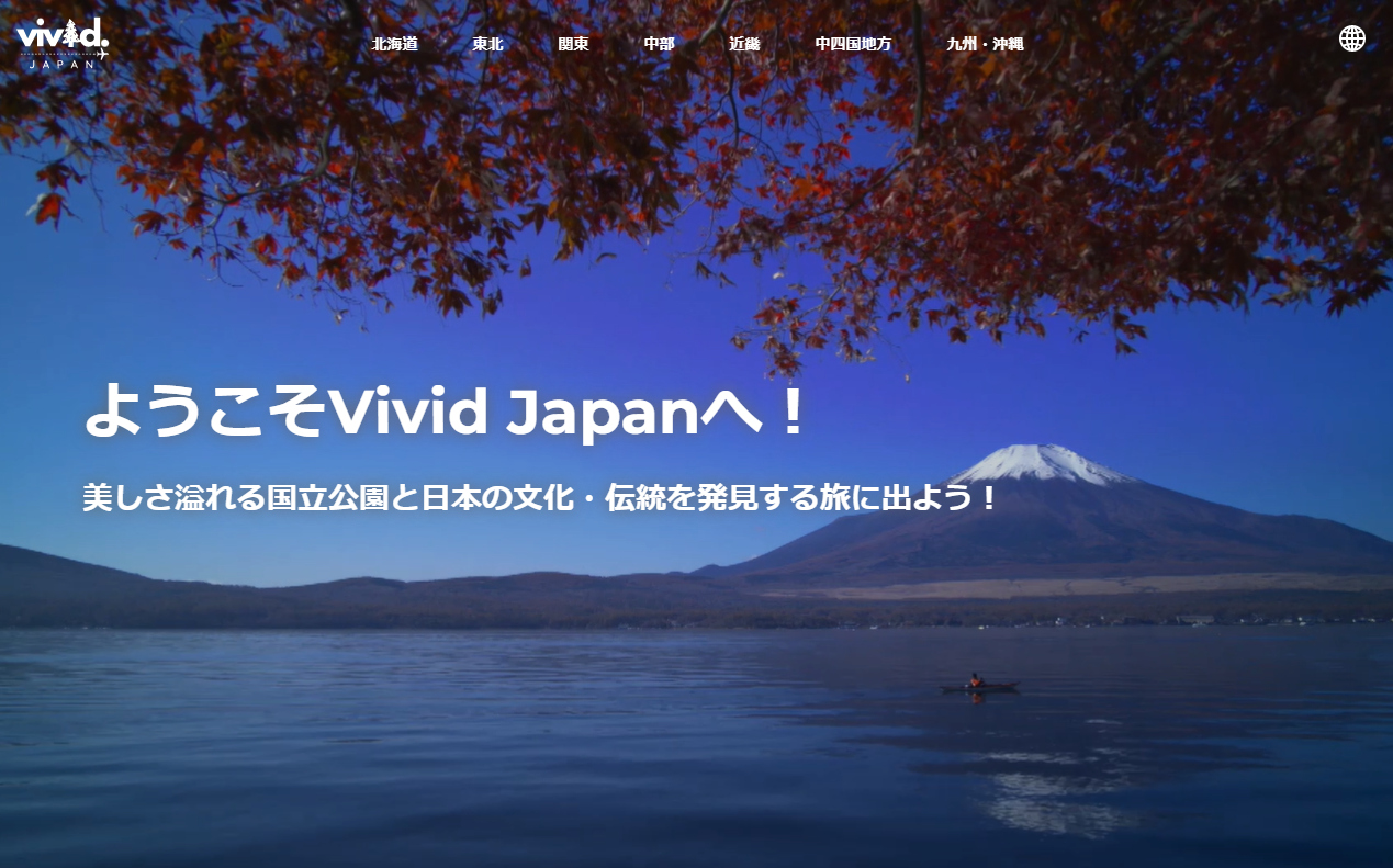 『Vivid Japan』(ビビットジャパン)は、日本の大自然と人が作り上げた鮮やかな風景や、伝統的な芸術や祭り・料理・音楽など日本独自の生き生きとした、好奇心を刺激する文化体験などに出会うことができる、国立公園をフィールドした、インバウンド向け観光体験の情報発信とオンライン予約サービスを提供する多言語対応ポータルサイトです。文化庁および独立行政法人日本芸術文化振興会による「日本博2.0を契機とする文化資源コンテンツ創成事業」の採択事業である「国立公園の文化資源を発信する官民連携プロジェクト」に参画するベルトラは、本ポータルサイトの構築・運営と、国立公園内で体験できるツアーやアクティビティの造成から販売までを担当しています。