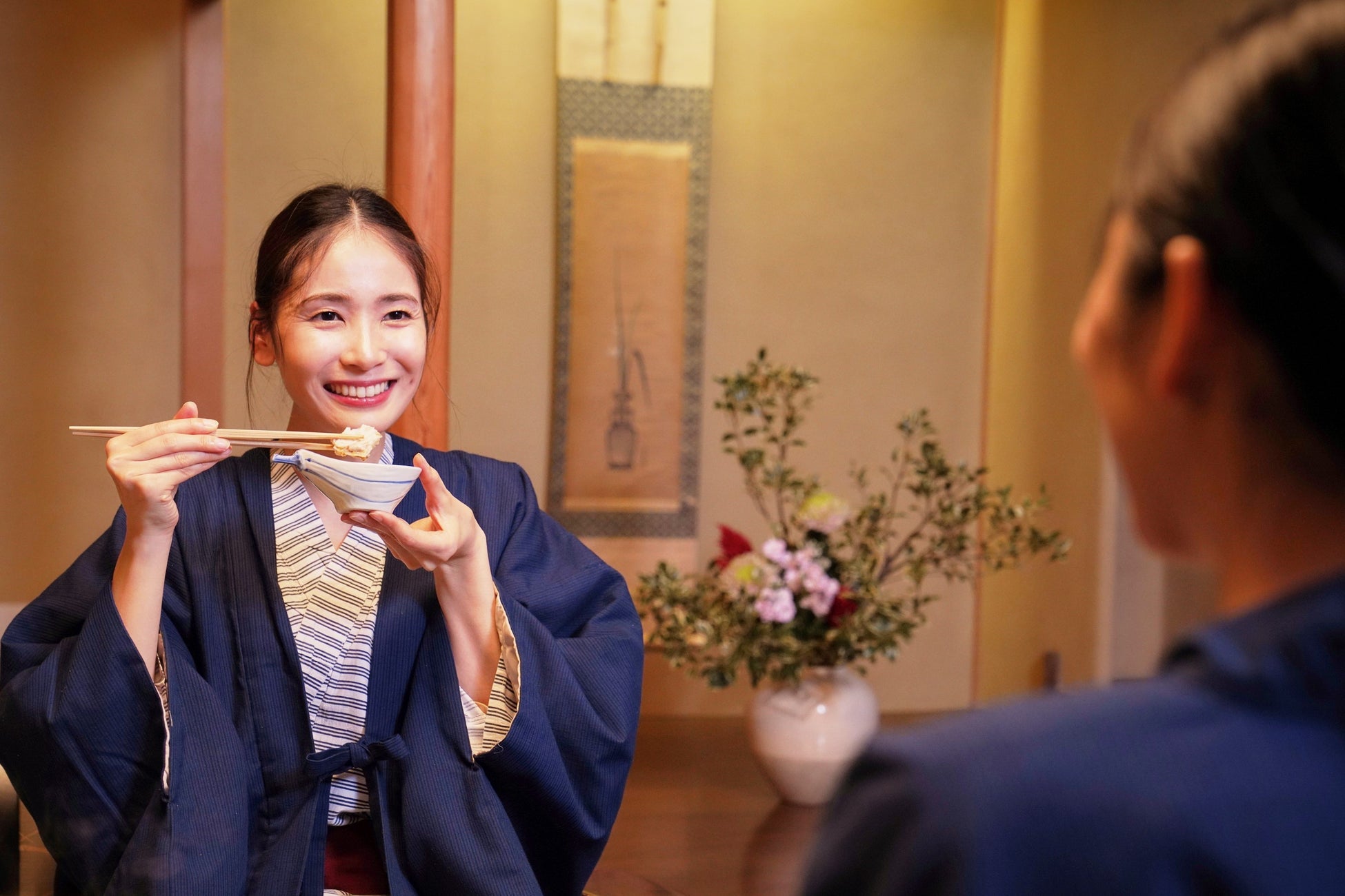 ・お食事は日本庭園のご覧いただけるお部屋でご用意いたします。
