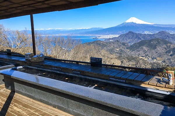山頂には水盤の開放的な展望広場「碧テラス」やカフェ・喫茶の他、富士見の足湯がございます。絶景を眺めながら、足湯に浸かり、体の芯からポカポカに。