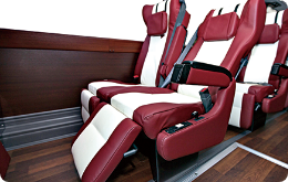 また、座席は車体色に合わせた本革専用シートになっており電源設備や可動式のヘッドフットレスト、アームレスト、レッグレストを備えています。